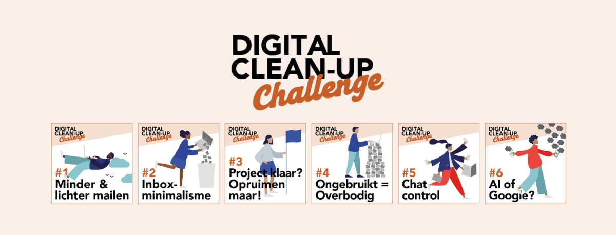 Klaar om ruimte vrij te maken op je schijf en in je hoofd? Let’s go! We hebben zes acties geselecteerd om het proces te versimpelen. Voel je vrij om de LinkedIn-slides te delen met collega’s en op sociale media om je impact te maximaliseren!